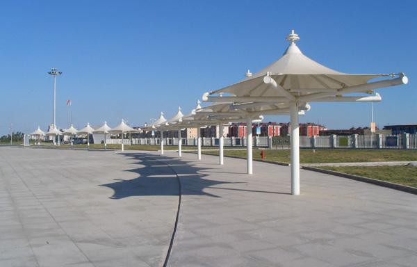 作為一種大跨度結(jié)構(gòu),自重輕通過(guò)膜,索具,鋼結(jié)構(gòu)的拉力平衡,可實(shí)現(xiàn)超越距離懸挑,采用膜結(jié)構(gòu)頂棚符合了體育場(chǎng)館的視野寬闊無(wú)結(jié)構(gòu)遮擋的建筑要求,成為業(yè)主以及設(shè)計(jì)師選擇結(jié)構(gòu)形式!由于膜材的透光性,白天陽(yáng)光可以透過(guò)膜材形成慢射光,是膜覆蓋空間內(nèi)達(dá)到和室外幾乎一樣的自然效果,因此膜結(jié)構(gòu)長(zhǎng)廊能創(chuàng)造出與自然環(huán)境相媲美的空間形式,因此,在城市的入口處,設(shè)計(jì)擁有自己城市鮮明特色和文化韻味的建筑形式乃是每個(gè)城市發(fā)展的選擇之作。