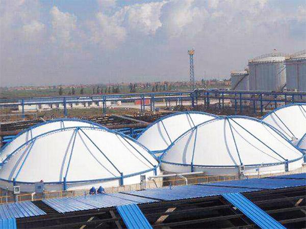 防腐效果強(qiáng)。由于膜結(jié)構(gòu)建筑結(jié)構(gòu)的特殊性,可將鋼架架設(shè)在外面,只有膜材部分接觸初沉池,基本解決了腐蝕問(wèn)題,而且將來(lái)也不用考慮維護(hù)問(wèn)題。